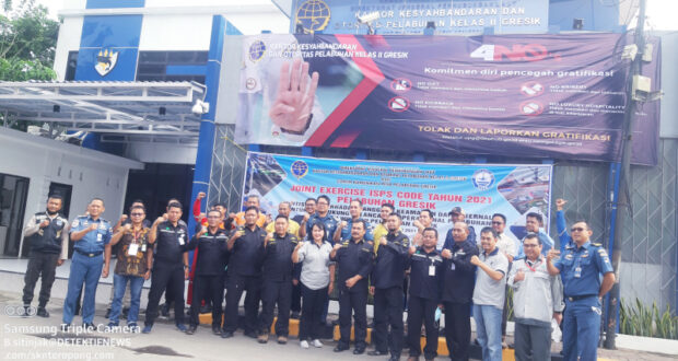 SURABAYA, TEROPONG-Kementerian Perhubungan Direktorat Jenderal Perhubungan Laut (Ditjenhubla) di Kantor Kesyahbandaran dan Otoritas Pelabuhan Kelas II Gresik bersama Forum Komunikasi Port Facility Security Officer (FORKOM-PFSO) Pelabuhan Gresik, dengan Konsultan Pendamping RSO-Kaneta Efka Jaya, kembali menggelar kegiatan Latihan Bersama Penanggulangan Gangguan Keamanan Joint Exercise ISPS Code di Wilayah Pelabuhan Gresik. Kegiatan ini dilakukan guna mengantisipasi jika terjadi…